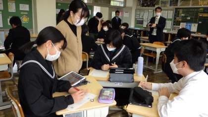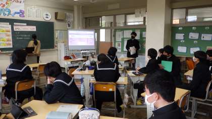1年生の学級活動ではメディアの使い方について学習しました。自分の生活を振り返り、メディアを使いすぎていないか、睡眠時間は足りているのか見直しました。また、養護教諭からブルーライトが体に与える影響について教えもらいました。メディアと上手に付き合っていきたいですね。