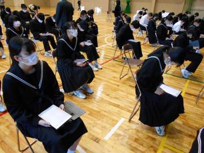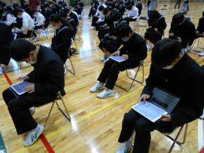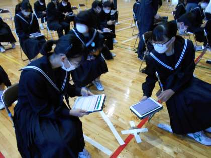 学習用タブレットで、Teamsで配信したExcelシートに感想を記入し、共有しました。