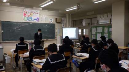 1枚目は3年生の数学の様子です。2枚目が2年生の理科の様子です。3枚目が1年生の数学の様子です。