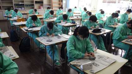 3年生は、美術の授業で判子作りをしています。やすり等の工具を器用に使って、丁寧に作業をしていました。技能教科の授業は、もう残り数回しかありません。満足のいく作品ができあがるといいですね。