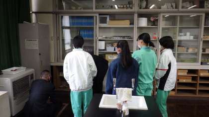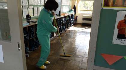 今日は清掃活動に注目してみました。寒くても一生懸命取り組んでいます。1枚目は理科室の棚の中を整頓するために、理科教諭と3年生、2年生で協力して清掃しています。2枚目は2年生の教室掃除です。3枚目は1年生の教室掃除です。