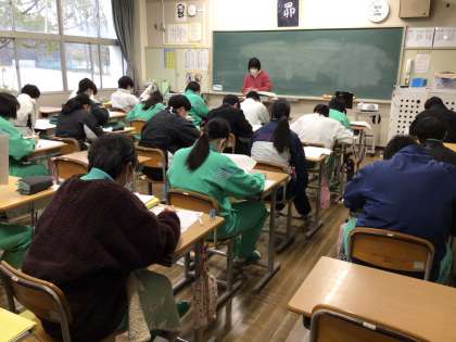 3年生は高校受験に向けて、1,2年生は来週の後期期末テストに向けて、集中して勉強に取り組んでいる様子が見られました。受験やテストに向けてがんばることは、容易なことではありません。