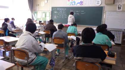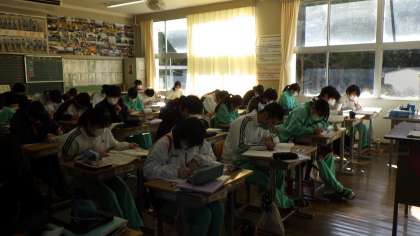 3年生は、社会の授業を受けている様子です。2年生は、数学の授業を受けている様子です。1年生は、英語の授業を受けている様子です。