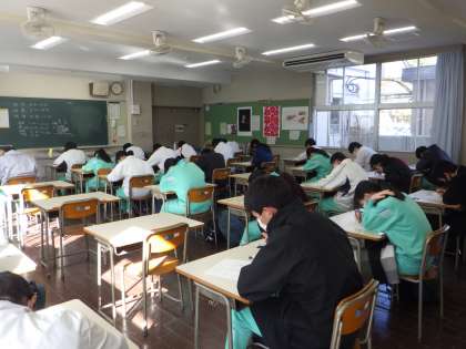 今日は後期期末テスト1日目でした。1,2年生は全教科、3年生は5教科あります。休みの時間では、次のテストに向けて教科書を確認する姿もありました。