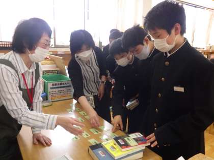 今日は司書の先生から、図書館の使い方を説明していただきました。1年生は初めての中学校の図書館に、目を輝かせていました。いろいろな本がそろっています!ぜひたくさんの本を借りて読んでくださいね。