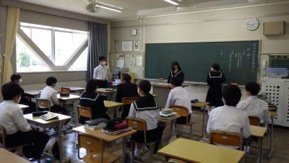 体育の授業で体力テストを行っています。写真は2年生の50メートル走の計測の様子です。昨年の記録との比較が気になるところです。1年生は委員会での話し合いにもなれてきました。3年生のリーダーとしての力も発揮していきます。