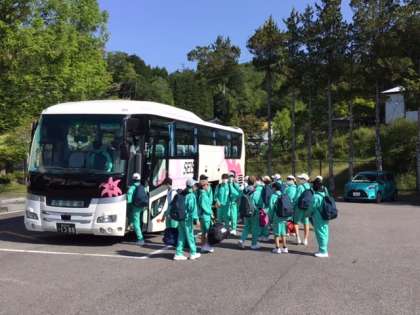 出発式を行ったあと、全員元気に豊田市総合野外センターに向けて出発しました。