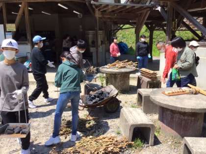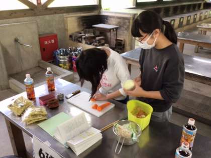 野外炊飯をはじめました。 昼食のメニューは焼そばです。