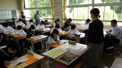 1年生の道徳科では下山中学校の教師が授業を参観する授業研究を行いました。よりよい授業を目指して、先生たちも勉強しています。