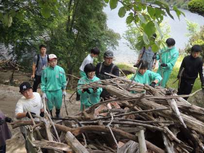 5月28日(日)、下山地区の推し活団体「ビレッジ・ファンズ・カンパニー」が主催する三河湖流木拾い・環境美化ボランティアに本校の生徒10人が参加しました。