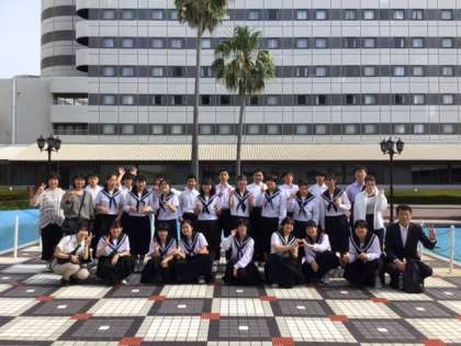 ホテルを出発しました。 食欲もあって、みんな元気です。 ホテルの中庭で記念撮影。