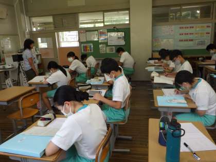 総合で学習したことをまとめていく段階に入っています。伝わりやすい表現になるよう、一人ひとりが工夫をしてまとめていました。