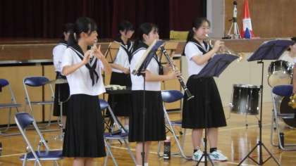 今日はSTに、吹奏楽部による「青春コンサート」が開催されました。演奏を聴いていると、観客から「かっこいい」という声があがるくらい素敵な演奏でした。各学年に注目した場面を写真で紹介します。
