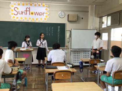 今日は、前期最後の委員会を行いました。一枚目は放送文化委員会の様子です。二枚目は保健給食委員会の様子です。三枚目は福祉美化委員会の様子です。