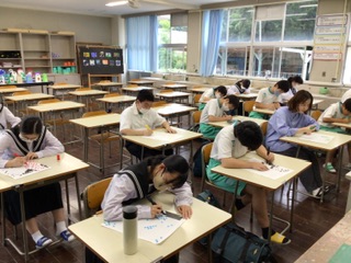 文化祭で展示するモザイクアートの制作をしています。完成図は当日のお楽しみです。保護者の皆様もご期待ください。