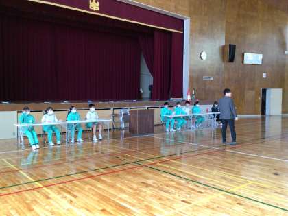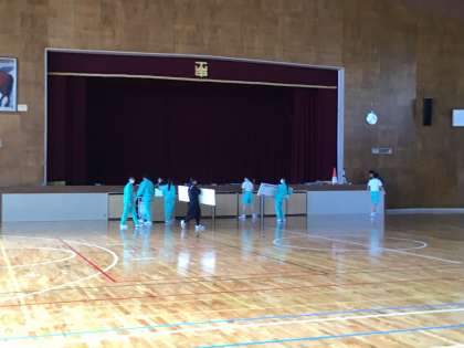今日は毎週木曜日にある下中タイムに注目しました。今日は、生徒会と委員長、3年学級代表が体育館で生徒総会のリハーサルをいていました。集会室では、前期保健給食委員が9日に行う学校保健委員会のリハーサルを行っていました。1枚目は生徒総会リハーサルの準備。2枚目は生徒総会の座席で本番を想定して流している写真。3枚目は、学校保健委員会のリハーサルの様子です。