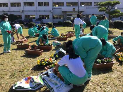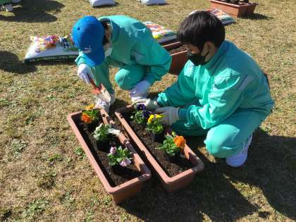 今日、1年生が5時間目にロータリーの花植え替えをしました。新しくパンジーを植え、これから育って花を咲かせるのが楽しみです。