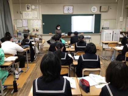今日は晴れ間が出たり、急に雨が降ったりして不安定な天気でした。3年生は思春期教室を行い、助産師の講師の方に性について講話をいただきました。正しい知識をもって、人と関わり、豊かな人生を築いていってほしいです。2年生は音楽で琴の授業、1年生は理科の授業の様子です。
