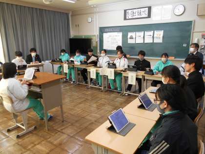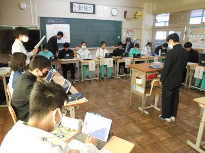 弁護士2名をお招きし、弁護士1日教室で模擬裁判を体験しました。3年生一人一人が配役をもち、台本に沿って裁判を進めていき、最終的には判決まで下しました。