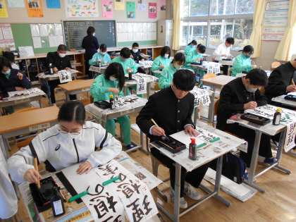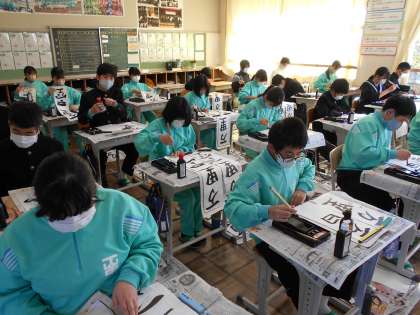 全校集会の様子と書初め大会の様子です。冬休み明け初日でしたが、どの学年も元気な姿を見せてくれました。