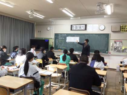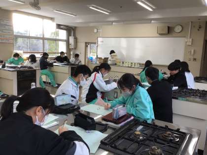 今日の3年生の授業の様子です。家庭科では2月の調理実習に向けてハンバーグの作り方を勉強しました。昨年はコロナの影響で調理実習が少なかったので、楽しみにしている様子が見られました。