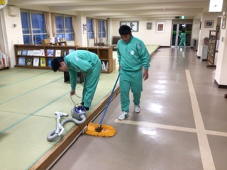 朝の集いを行い、清掃活動を行いました。