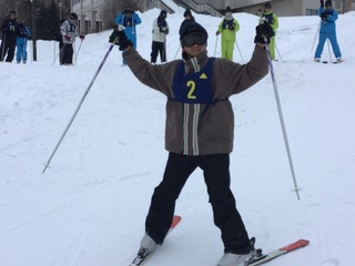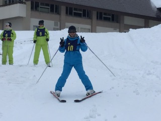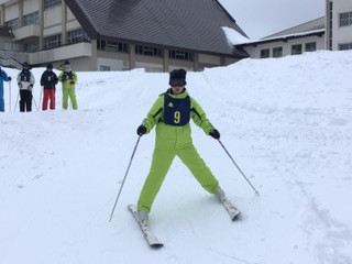 終始、小雪が舞って寒いですが‥ スキー研修 頑張ってます。 初心者班の様子 その1