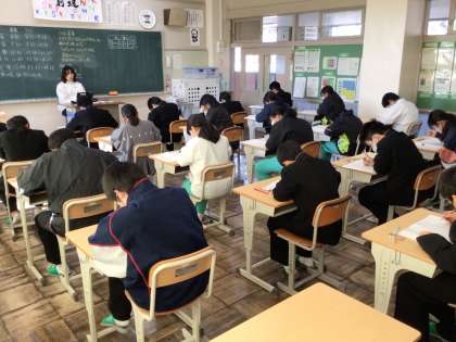 1・2年生は学習診断テストを行いました。国語科・社会科・数学科・理科・英語科のテストを1日で行うもので、生徒たちは疲れたと思いますが、一生懸命に取り組んでいました。結果が楽しみですね。
