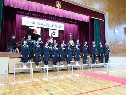 卒業証書授与式を行いました。卒業生は堂々とした態度で証書を受け取り、答辞や合唱も素晴らしいものでした。在校生も送辞や合唱をがんばりました。