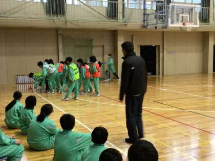 本日の体育は、特別ゲストとして校長先生が授業を行いました。生徒のみんなは新鮮な気持ちで、楽しく準備運動やバスケを行っていました。
