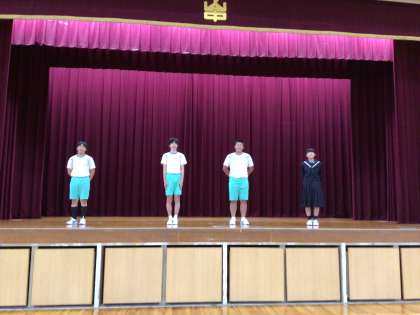 6月20日の壮行会に向けて、リハーサルを行いました。一枚目は情報文化部、二枚目は男子ソフトテニス部、三枚目は女子ソフトテニス部の様子です。