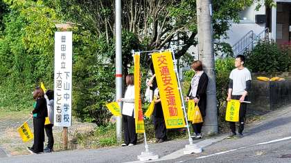 今日は、PTAで行うあいさつ運動を兼ねての登校指導がありました。少し涼しくなってきたもののまだまだ残暑が厳しい中、生徒たちは元気にあいさつをしながら登校してきました。保護者の皆様、ご協力ありがとうございました。登校指導の参加が難しい方は、9月25日に行われる下校指導にご参加ください。よろしくお願いいたします。