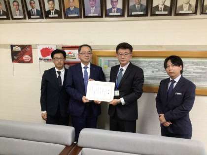 株式会社トーヨーセキュリティーイーエス様より、記念品として、小型プロジェクター 1台、プロジェクター用三脚 1台、プロジェクタースクリーン 1台、熱中症指標計 2台をいただきました。