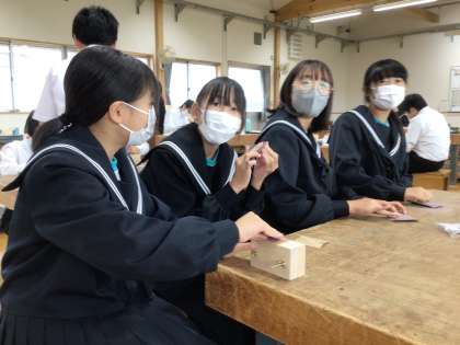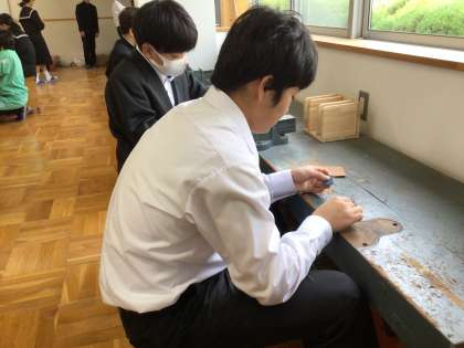技術室から、やすりで削る音、切断機の音、生徒たちの楽しそうな声が聞こえてきます。