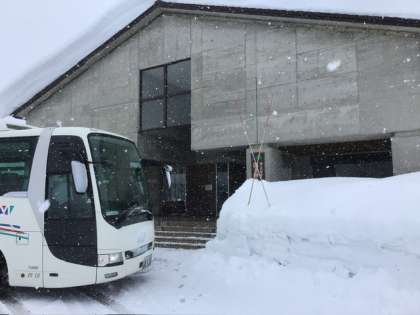 自然の家に到着して入所式を行いました。 かなり降っています。
