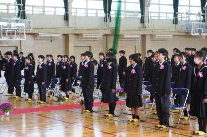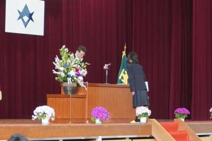 暖かな天候に恵まれ、桜も満開に咲き誇る中、本日入学式を行いました。着慣れない制服に身を包み、これからの新しい学校生活の期待と不安を胸に、式に臨みました。来賓の方々や保護者、先生方、在校生に見守られながらも担任の呼名に大きな声で返事ができました。これからの新1年生の成長が楽しみです。