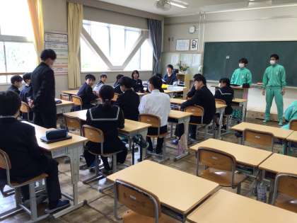5月17日の体育祭に向けて、全校生徒が4つの団に分かれて団ミーティングを行いました。団長の話から始まり、団員の自己紹介、色争奪戦(綱引き)に向けた作戦会議と進みました。どの団も最初ということもあり緊張ぎみでしたが、これからの団活動を通して各団の色が出てくるのが楽しみです。