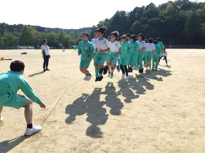 本日の体育祭練習では大玉送りの練習も加わり、大玉送りの練習をする団や大縄跳びに専念する団もありました。大玉送りでは団員同士声を掛け合いながら大玉を送っていました。大縄跳びは、団独自の掛け声で息を合わせて跳んでいました。団全員が切磋琢磨し、成長していく姿が楽しみです。