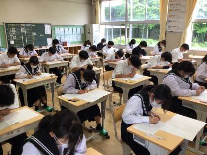 前期中間テストが始まりました。日頃の学習の成果を試す場として、どの生徒も集中して取り組んでいました。明日はテスト最終日です。疲れがある中でもしっかりと自分の力が発揮できるように、よい準備をしてほしいです。