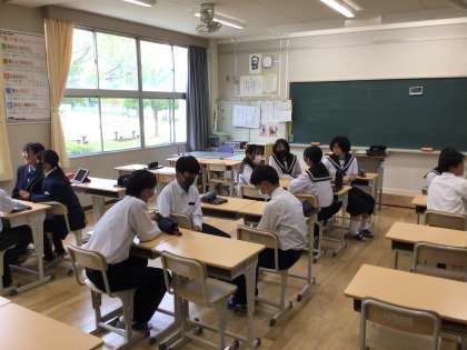 中間テストが終わり、委員会活動を行いました。これまでの取組の振り返りや校内の清掃道具の確認と整理など、学校での諸活動がより快適にできることを考えて取り組んでいました。