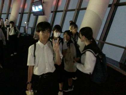 展望台まで上がりましたが‥ 真っ白で何も見えませんでした。 大型パネルの前で記念撮影