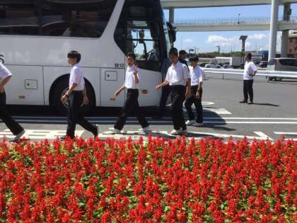 大黒埠頭パーキングでトイレ休憩 寝ていた生徒が多かったようです