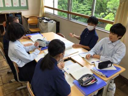 1年生の国語科では、研究授業を行いました。個々の意見をもち、グループで意見を共有する場面では、自然と話合いが進められていました。