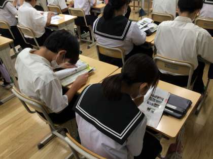 2年生では、先日の職場体験のまとめを行っています。活動を振り返り、新たな気づきや今後の自分の生き方にもつながるものになってほしいです。