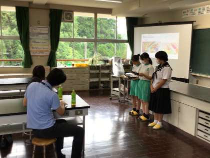 1年生では、総合的な学習の時間で取り組んでいる「下山地区のためにできること」を考え、下山支所の方に向けてプレゼンを行いました。支所の方からも助言をいただいたので、今後に生かしてほしいです。