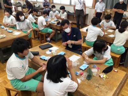 2年生では、Toyota Technical Center Shimoyama、下山支所と連携し、下山地区オリジナルの教育活動「LEXUS & GR チャレンジLab@下山中」の第1回目を実施しました。自動車づくりにおける空力について学び、実際に模型を使って楽しみながら理解を深めることができました。地元の企業との活動を通して、下山地区のよさやすごさを再認識できた時間にもなりました。
