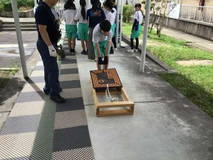 今日は消火栓等取扱実施訓練を行いました。初めての体験に胸を躍らす生徒や実際に火災が起きたときのことを