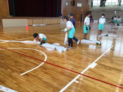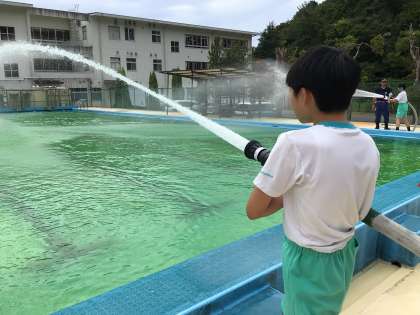 考える生徒の姿が見られました。放水訓練では、放水の勢いに負けないように前傾姿勢で踏ん張る生徒に対して、「頑張れ」「かっこいい」と言った励ましの声が聞こえたことが印象的でした。