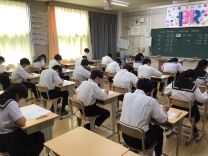 3年生では、第2回学習診断テストが行われました。学習診断テストは、これまでの学習の成果を試す場、学習診断テストの手応えから進路を決める材料、今後の学習の方向性など、様々なことにつながるものです。3年生の受験姿勢からも真剣さが伝わってきました。