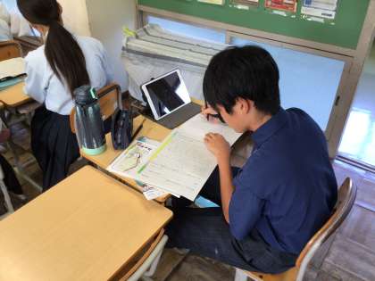 1年生では、先日、三河万歳の歴史や道具の使い方などについて講義をしてくださった浅井様にお礼の手紙を書いていました。学んだことや今後に生かしたいことを中心に手紙を書いている生徒が多く、今回のことをきっかけに三河万歳により興味をもってくれると下山地区の活性化につながりますね。